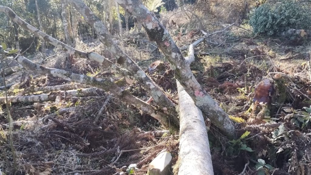 Neste sábado, 19, a Polícia Militar de Santa Catarina (PMSC), por meio do Comando da Polícia Militar Ambiental (CPMA), flagrou o corte seletivo de diversas árvores nativas na localidade de Baianos, zona rural de Urubici. A ação, realizada com motosserra, não possuía a devida autorização dos órgãos competentes.