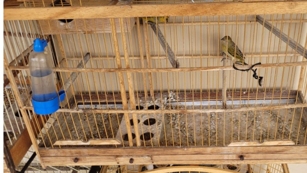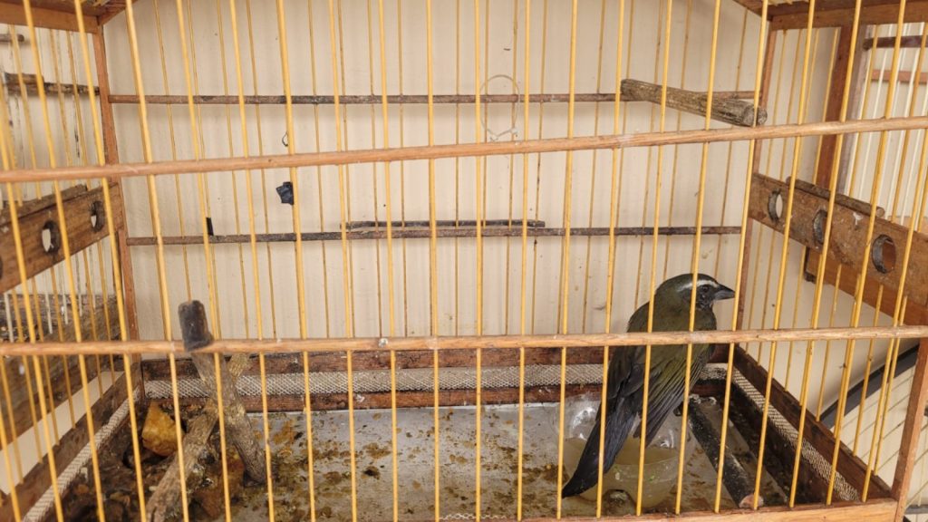 Durante a fiscalização, os pássaros silvestres das espécie Trinca-ferro e Canário da Terra foram apreendidos por serem mantidos em cativeiro, sem a devida autorização da autoridade ambiental competente. Os animais estavam alojados em gaiolas.Juntamente com os pássaros foram apreendidos 12 gaiolas, e dois alçapões que eram usados para capturar pássaros nativos.