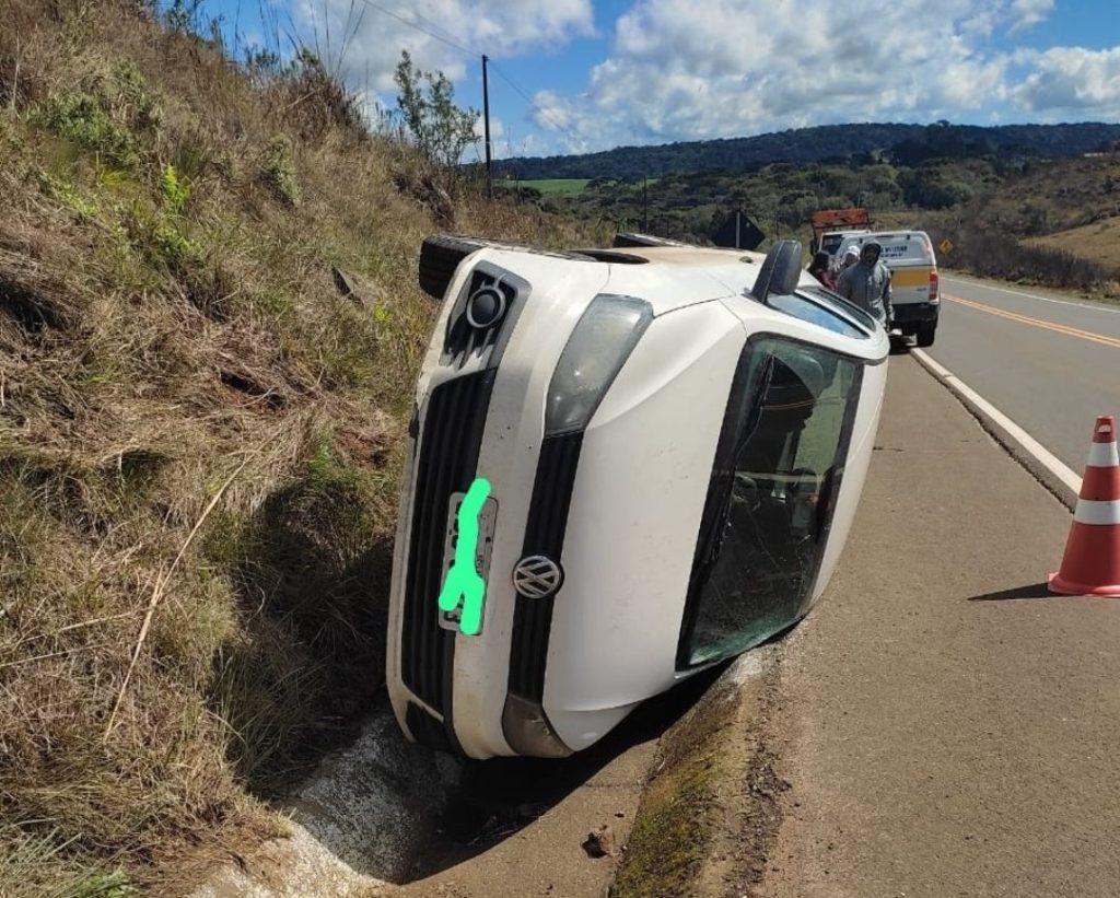 Na manhã desta terça-feira (9), um carro tombou na SC-390, em Capão Alto.