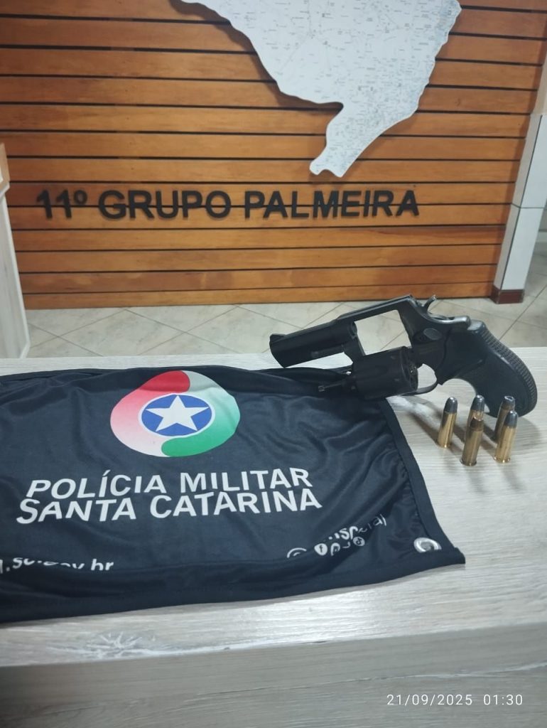 Na madrugada deste domingo (21), por volta de 0h36, a Polícia Militar Rodoviária prendeu um homem de 36 anos por porte ilegal de arma de fogo na SC-114, km 202, em Palmeira.