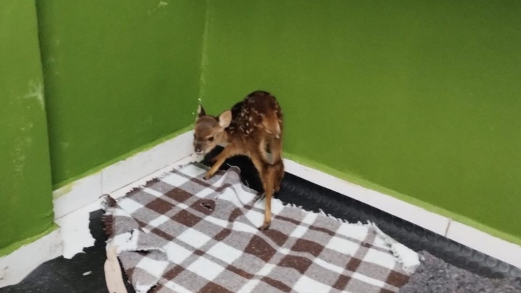 O cervo, visivelmente agitado e amedrontado, foi transferido para o hospital veterinário no Centro de Ciências Agroveterinárias da Universidade do Estado de Santa Catarina (CAV/Udesc), onde recebeu cuidados veterinários especializados, com a finalidade de garantir seu bem-estar e recuperação.