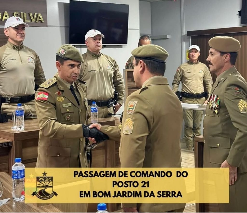 Na tarde desta quinta-feira (25), a Polícia Militar Rodoviária realizou a cerimônia de passagem de comando do 21º Grupo de Polícia Militar Rodoviária (CPMRv), em Bom Jardim da Serra. O ato oficializou a transferência da função do 1º sargento Erlon Natalino Cantelli para o 2º sargento Carlos Eduardo Luchtenberg Padilha.
