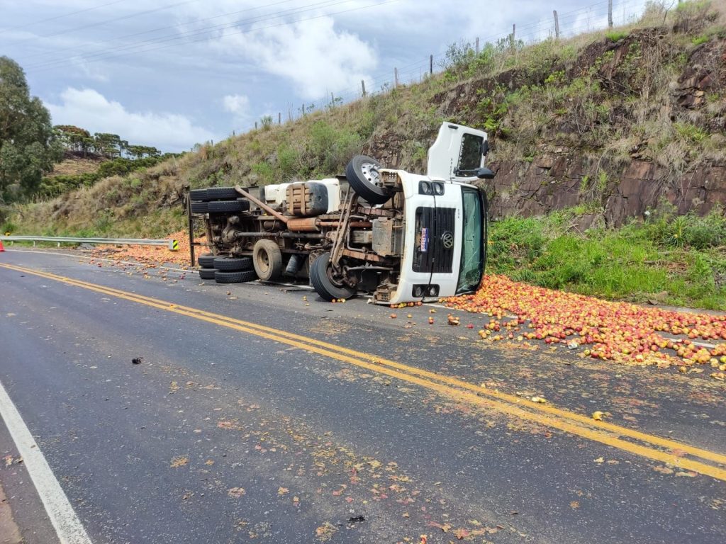 Um caminhão tombou na manhã desta terça-feira (7) na rodovia SC-114, no quilômetro 288,700, em São Joaquim, na Serra Catarinense. O sinistro de trânsito ocorreu por volta das 10h e envolveu um VW/24.250 CNC 6×2, com placas de Bom Jesus (RS).