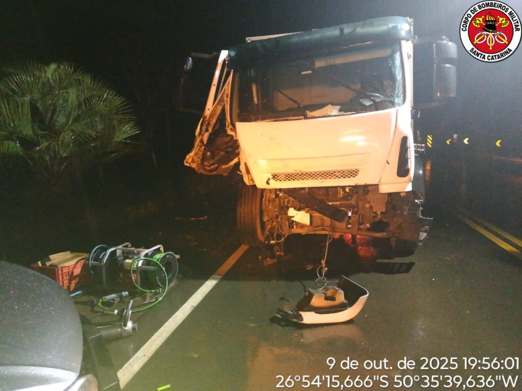 A ocorrência envolveu uma colisão transversal entre um automóvel VW Polo e um caminhão Iveco Tector 310. No carro estavam três homens. O condutor, de 45 anos, ficou preso às ferragens em estado crítico, com suspeita de traumatismo cranioencefálico (TCE), hemorragia interna e fraturas nos membros inferiores. Ele foi retirado em ângulo de 90° e encaminhado ao Hospital Santo Antônio, pela guarnição do ASU-494 de Lebon Régis.