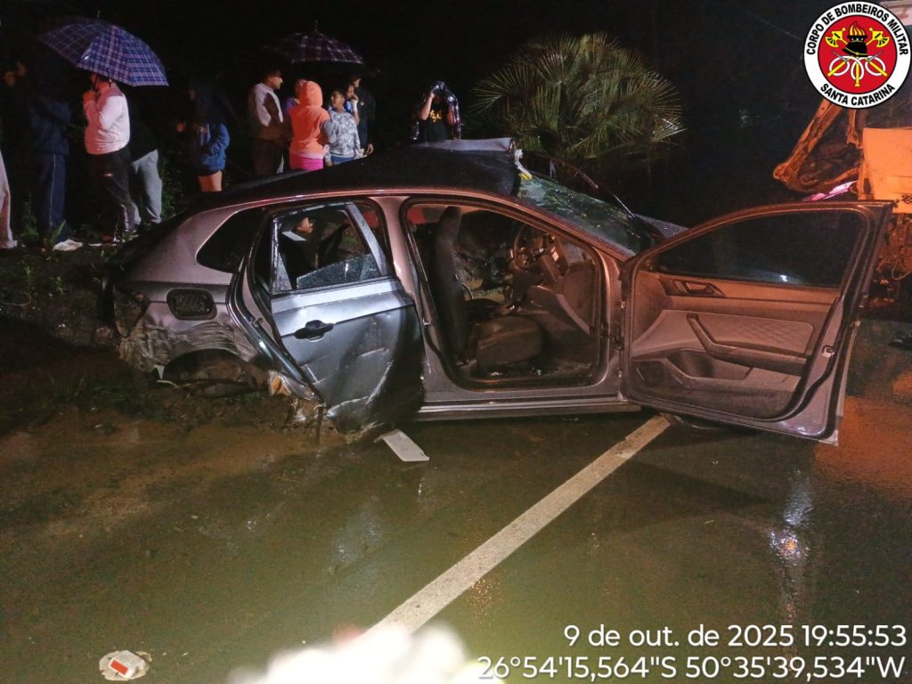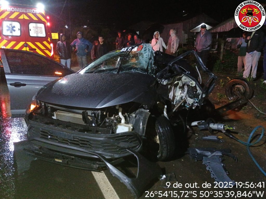 O Corpo de Bombeiros Militar de Lebon Régis atendeu, na noite desta quinta-feira (9), um grave acidente de trânsito na Rodovia SC-350, na localidade de Rio Bonito, região que faz limite entre os municípios de Lebon Régis e Santa Cecília.
