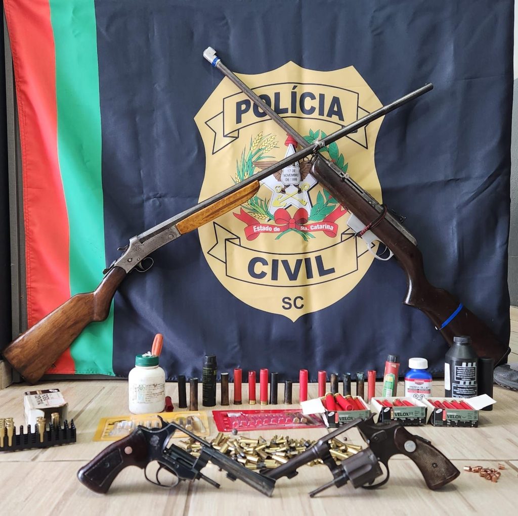 Durante as diligências, as equipes apreenderam quatro armas de fogo de calibres diversos, além de diversas munições e materiais utilizados para recarga artesanal, como pólvora, chumbo e espoletas.