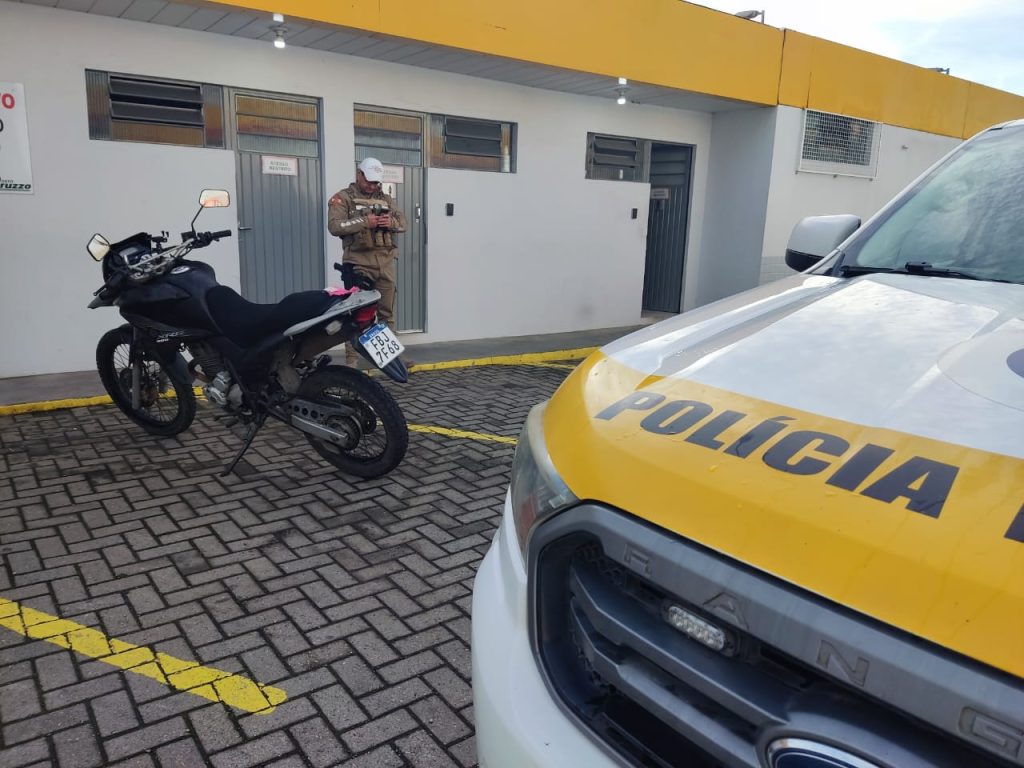 Uma motocicleta com registro de furto foi recuperada pela Polícia Militar Rodoviária (PMRv) na manhã desta sexta-feira (17 ), na Avenida das Torres, bairro Guarujá, em Lages, na Serra Catarinense.