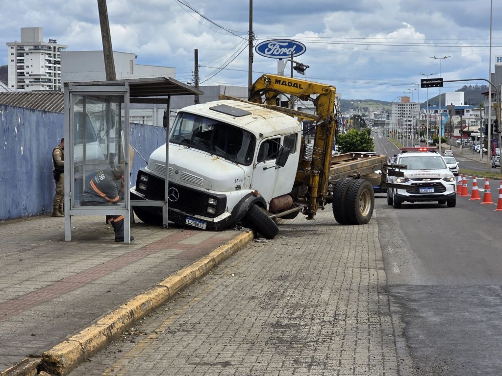 No início da tarde desta quinta-feira (12), um caminhão Mercedes apresentou um defeito mecânico, e acabou colidindo contra um poste e um ponto de ônibus na avenida Dom Pedro II, no bairro São Cristóvão, em Lages. Ninguém ficou ferido e houve apenas danos materiais. Polícia Militar e agentes de trânsito atenderam a ocorrência.