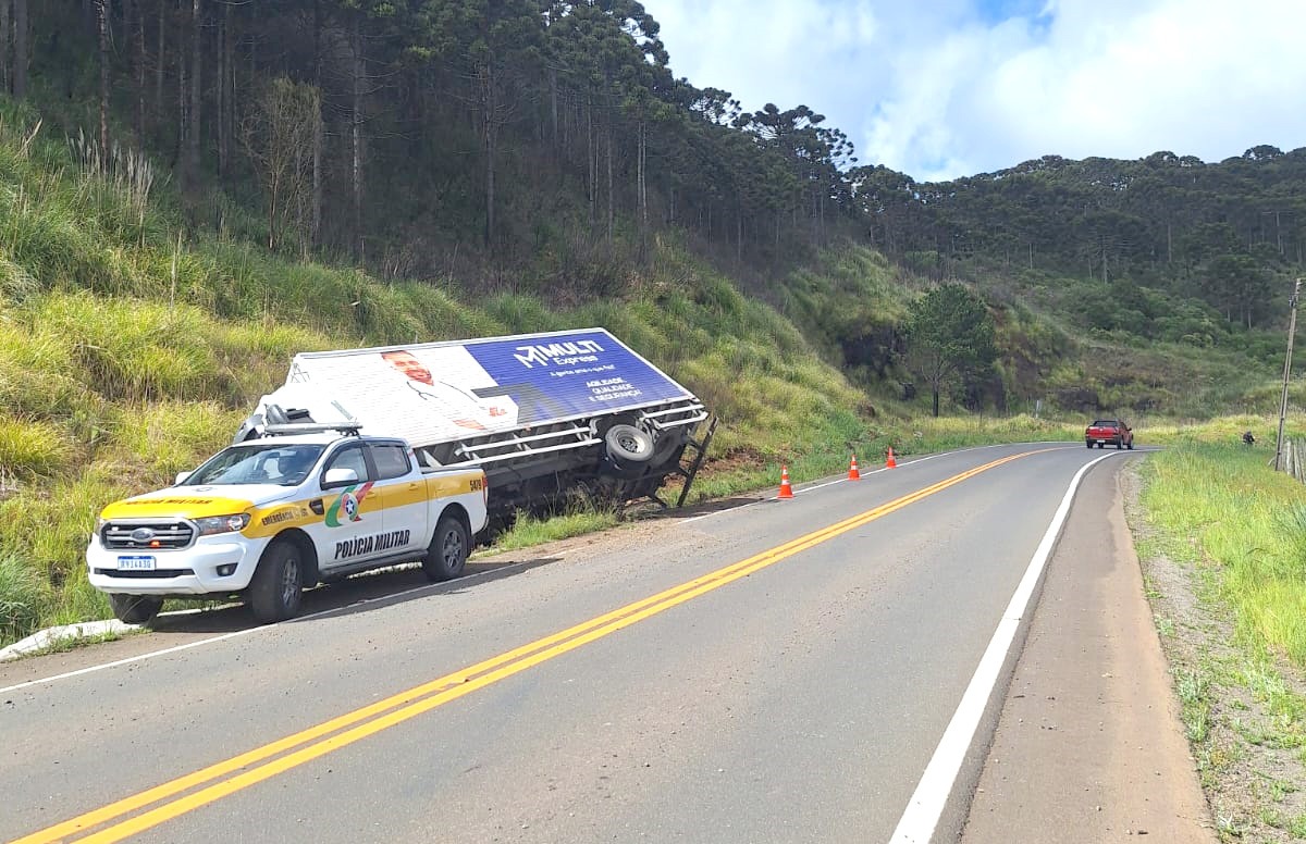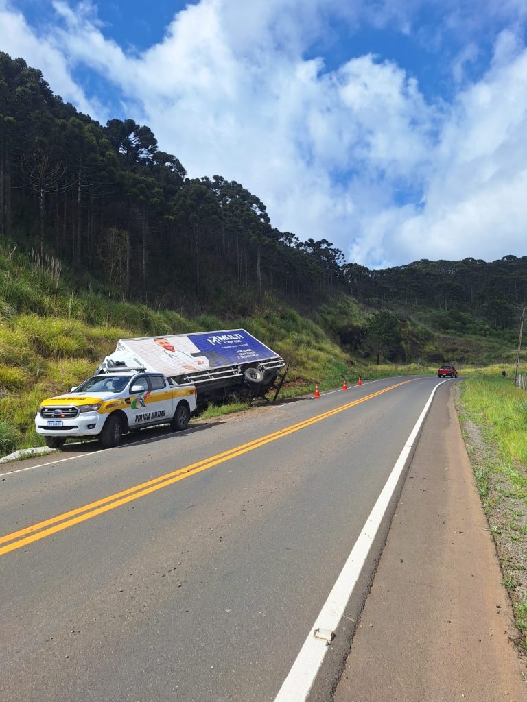 De acordo com informações da Polícia Militar Rodoviária (PMRv), a guarnição da viatura PM-5479 foi acionada por volta das 5h30min via central de emergência para atender a ocorrência. O condutor do veículo, um homem de 44 anos, seguia no sentido São Joaquim para Bom Jardim da Serra quando perdeu o controle da direção, resultando na saída de pista e tombamento do caminhão.
