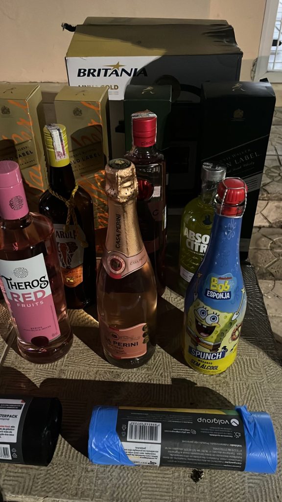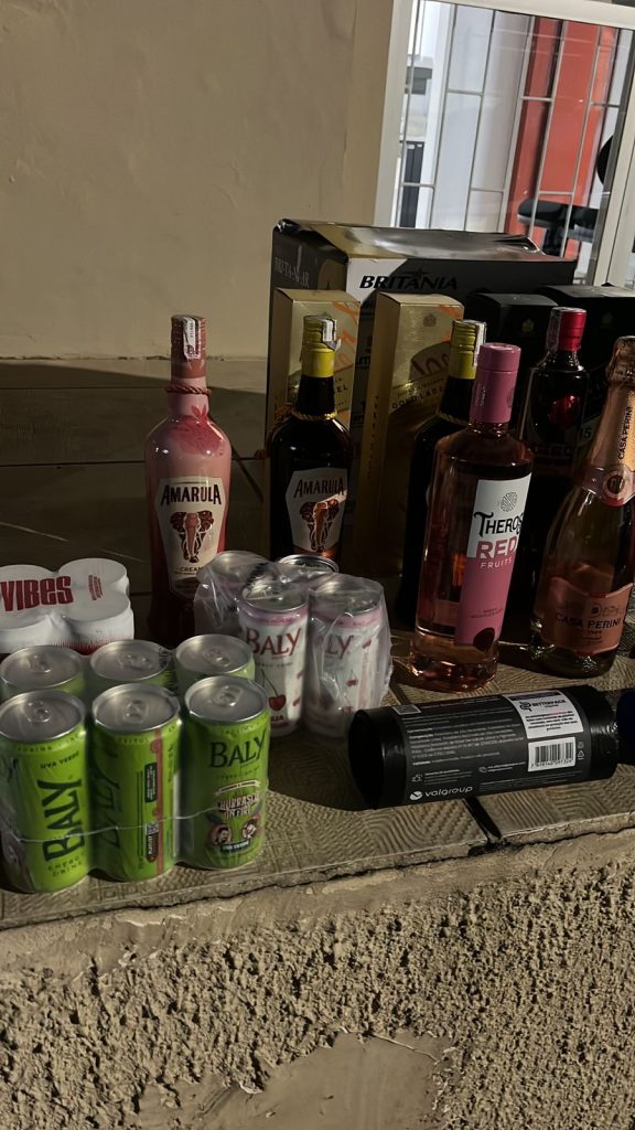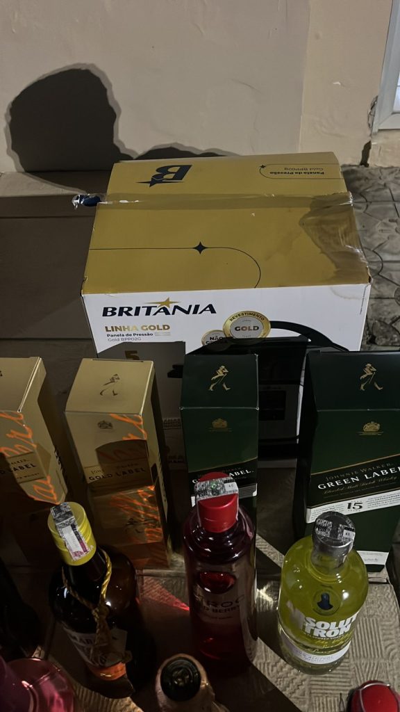 Entre os itens recuperados estavam bebidas alcoólicas de diversas marcas, como gin, vodca e uísque, além de chinelos infantis, panelas elétricas, produtos de higiene pessoal, energéticos e chocolates.