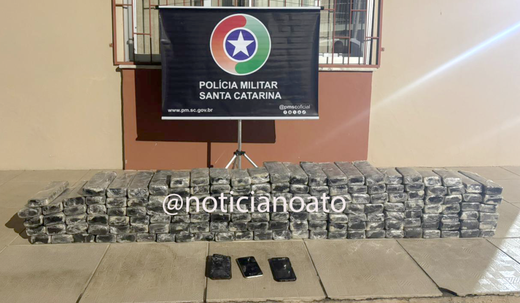 Na abordagem, foi realizada a identificação dos envolvidos e, durante a busca veicular, os policiais localizaram aproximadamente 103,600 quilos de maconha, distribuídos em 146 tabletes inteiros e oito metades, todos devidamente embalados. Também foram apreendidos dois aparelhos celulares, sendo um deles danificado.