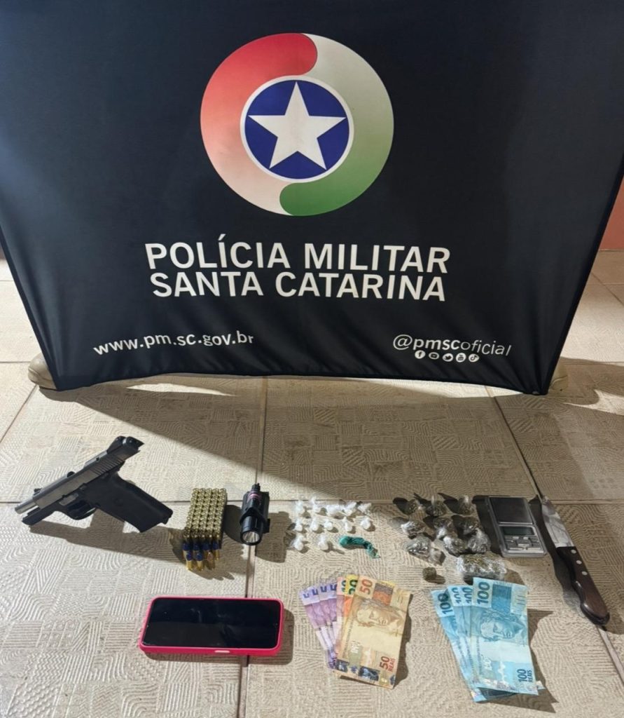 Na noite desta sexta-feira, dia 02, por volta das 20h59, a Polícia Militar realizou uma ação de combate ao crime no município de Lages, que resultou na apreensão de uma arma de fogo, munições e entorpecentes, além da prisão de um suspeito por tráfico de drogas.