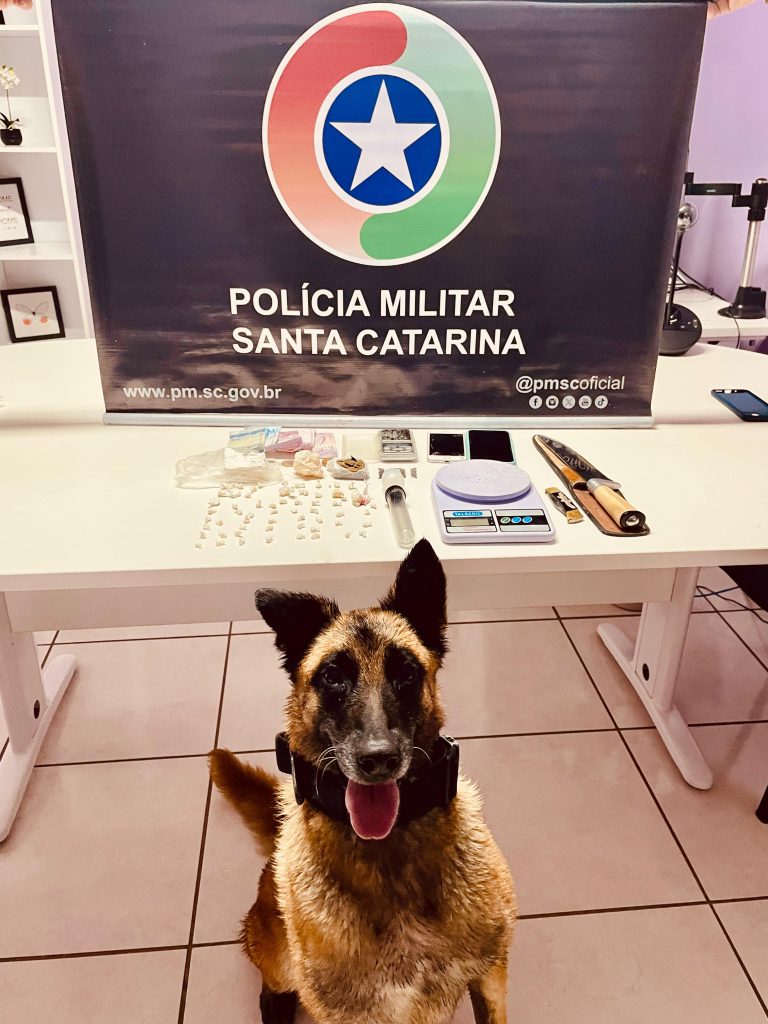Na sequência das diligências, o canil da Polícia Militar foi acionado. Com o auxílio de cão de faro, os policiais localizaram outras porções de entorpecentes em diferentes pontos da residência e nas proximidades, incluindo substâncias análogas à maconha, cocaína e crack, além de uma pedra de crack ainda não fracionada. Também foram apreendidos utensílios utilizados no preparo das drogas e um aparelho celular que, segundo a PM, era empregado na comercialização dos entorpecentes.