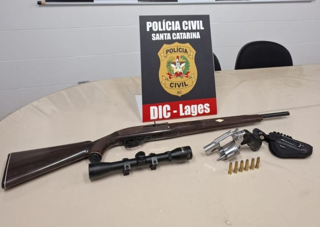 Durante o cumprimento das prisões, foram apreendidas armas de fogo que estavam na posse dos investigados, sendo um revólver e uma arma longa (espingarda).