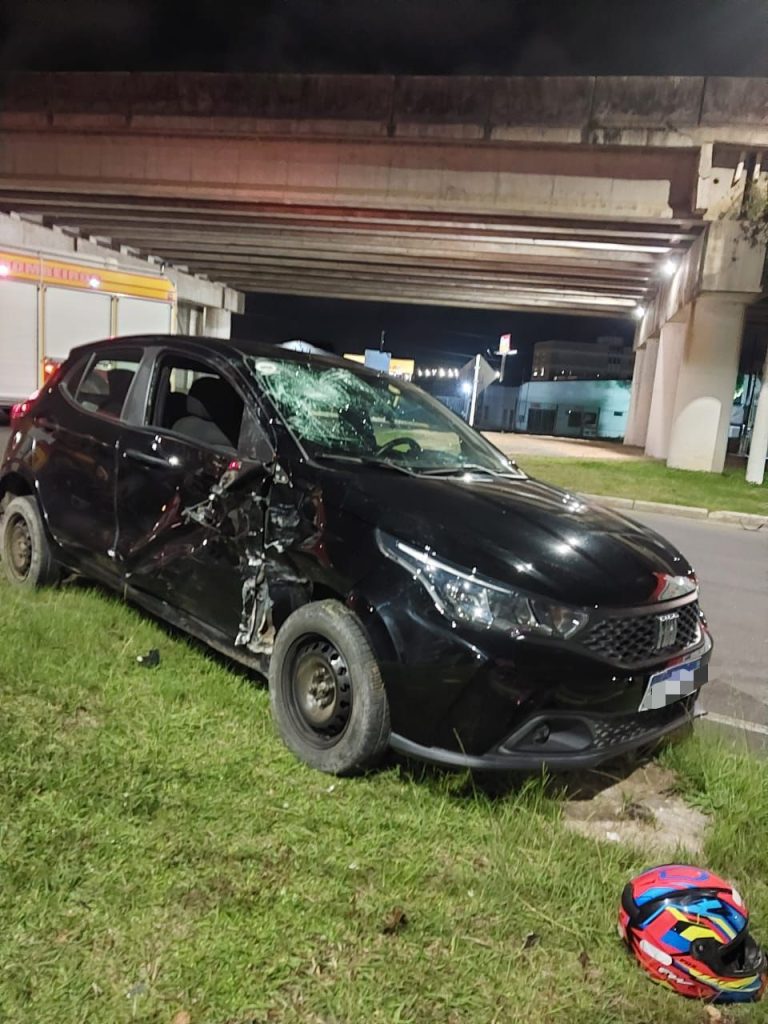De acordo com o Corpo de Bombeiros Militar de Santa Catarina, a ocorrência foi atendida na rótula da marginal da BR-282, no bairro Conta Dinheiro, nas proximidades do viaduto da Avenida Duque de Caxias. No local, foi constatada uma colisão envolvendo um automóvel modelo Fiat Argo e uma motocicleta Honda Titan. O condutor do carro, um homem de 22 anos, não sofreu ferimentos. Já o motociclista foi encontrado caído, inconsciente e sem sinais vitais.