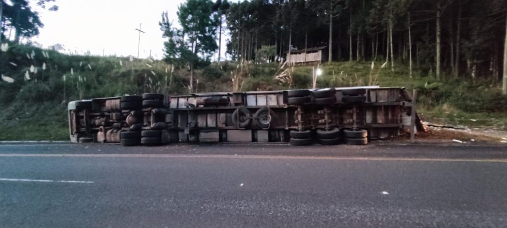 Segundo relato, o caminhão seguia no sentido São Joaquim–Painel quando, ao passar por uma curva, acabou tombando. O veículo ficou às margens da rodovia, com uma pequena parte sobre a pista, causando interdição parcial.