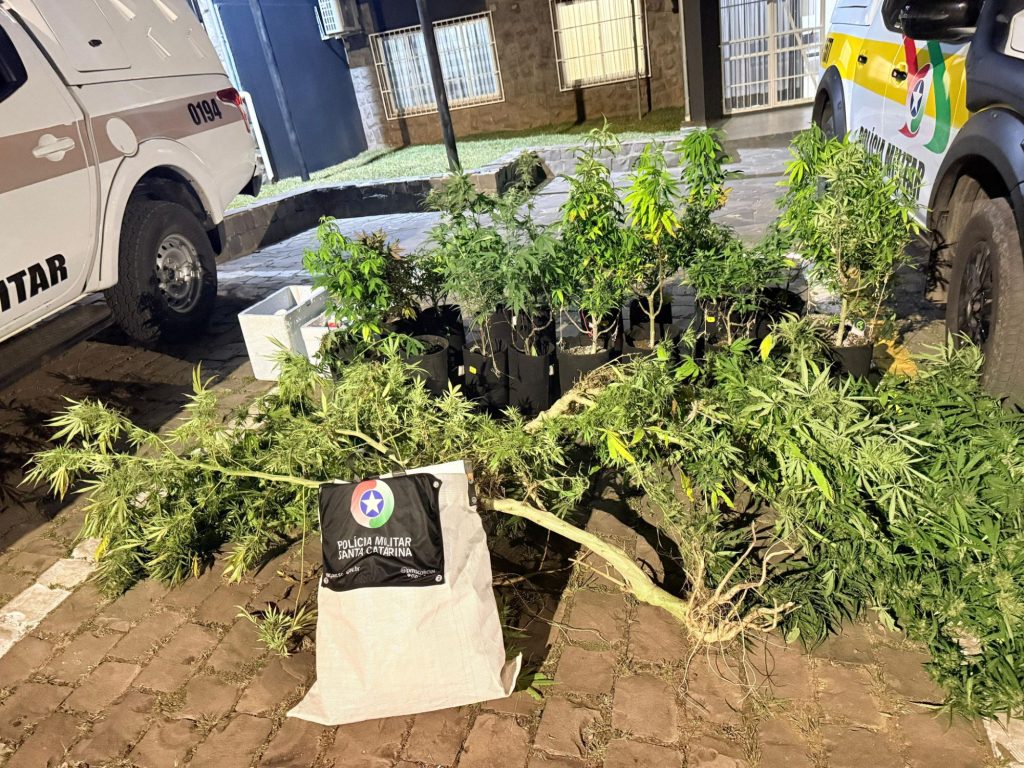 Com apoio de guarnições da Polícia Militar, foram realizadas buscas nas proximidades. Durante a ação, os policiais localizaram, em um terreno residencial, uma planta com cerca de dois metros de altura, com características semelhantes à maconha.