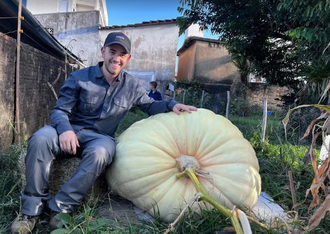 O interesse de Alessandro pelo cultivo de abóboras surgiu após assistir a vídeos sobre competições nos Estados Unidos. Determinado a replicar o feito no Brasil, ele decidiu investir no plantio. “Nos primeiros dias, ela crescia absurdamente. Cheguei a medir e, diariamente, o crescimento era de cerca de cinco centímetros”, conta.