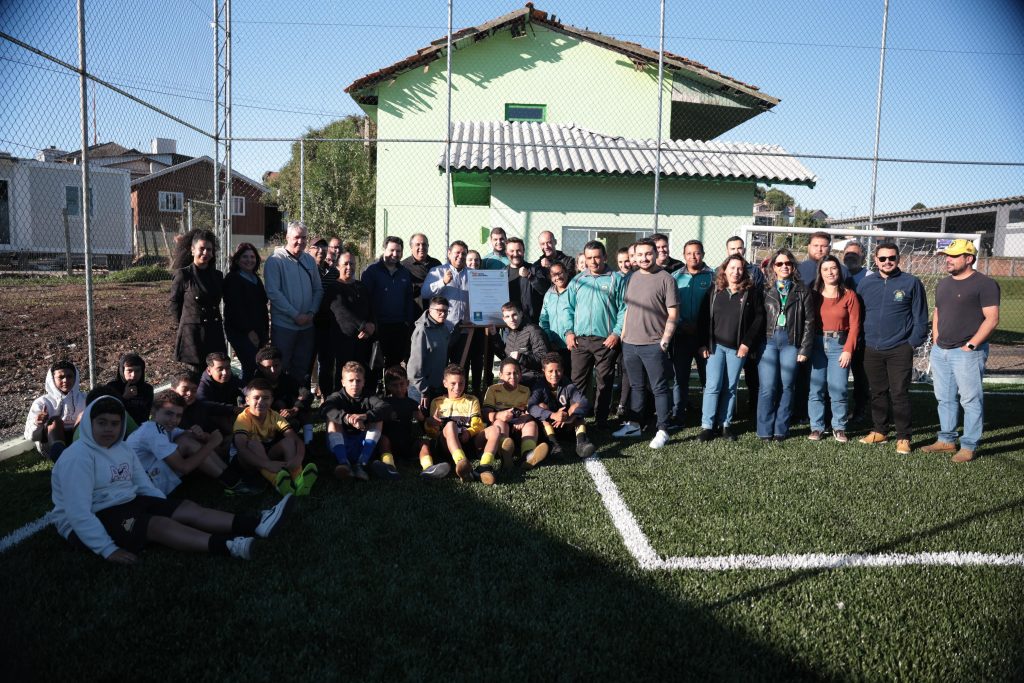 Além da nova quadra, também foi entregue um moderno e colorido parque infantil na Escola de Educação Infantil Municipal Madre Paulina. No mesmo local, uma quadra poliesportiva está em fase de construção.