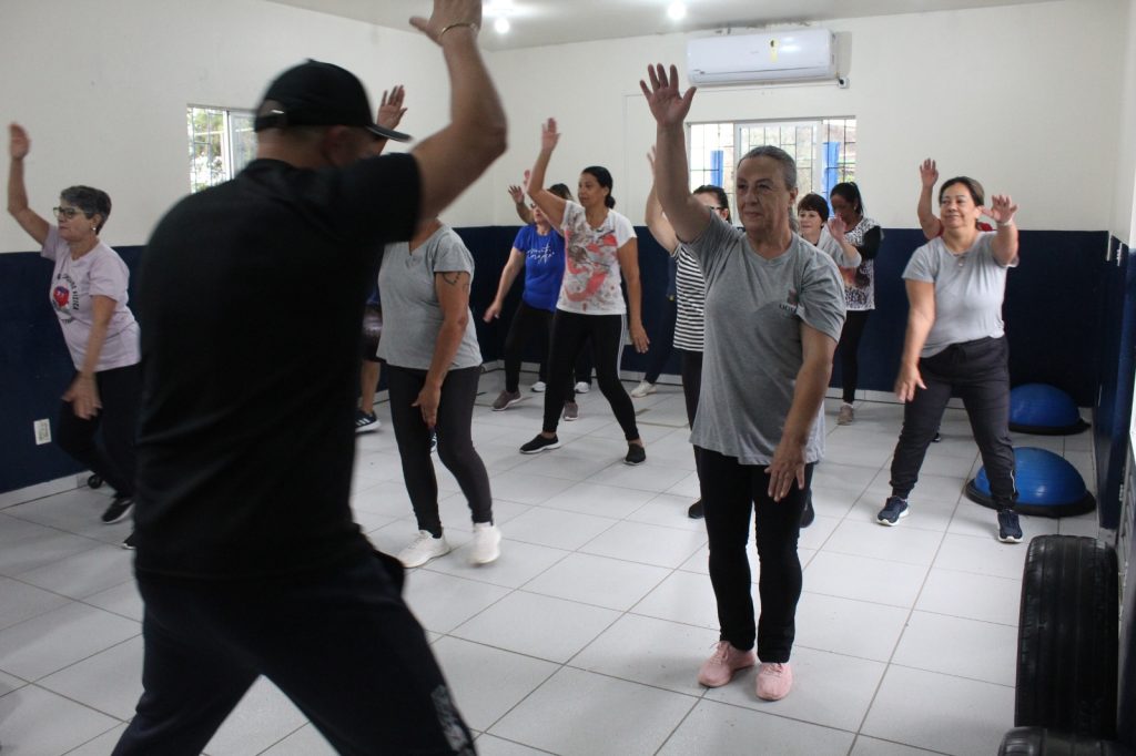 As aulas incluem alongamento, treino funcional adaptado e caminhadas em alguns períodos do ano