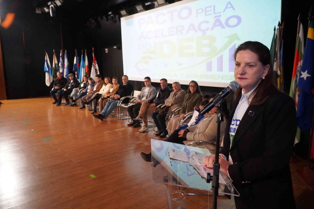 Gestores municipais, educadores e autoridades da Serra Catarinense se reuniram nesta terça-feira (26), no Teatro do Centro Universitário Facvest (Unifacvest), em Lages, para a assinatura do Pacto pela Aceleração do Índice de Desenvolvimento da Educação Básica (Ideb).