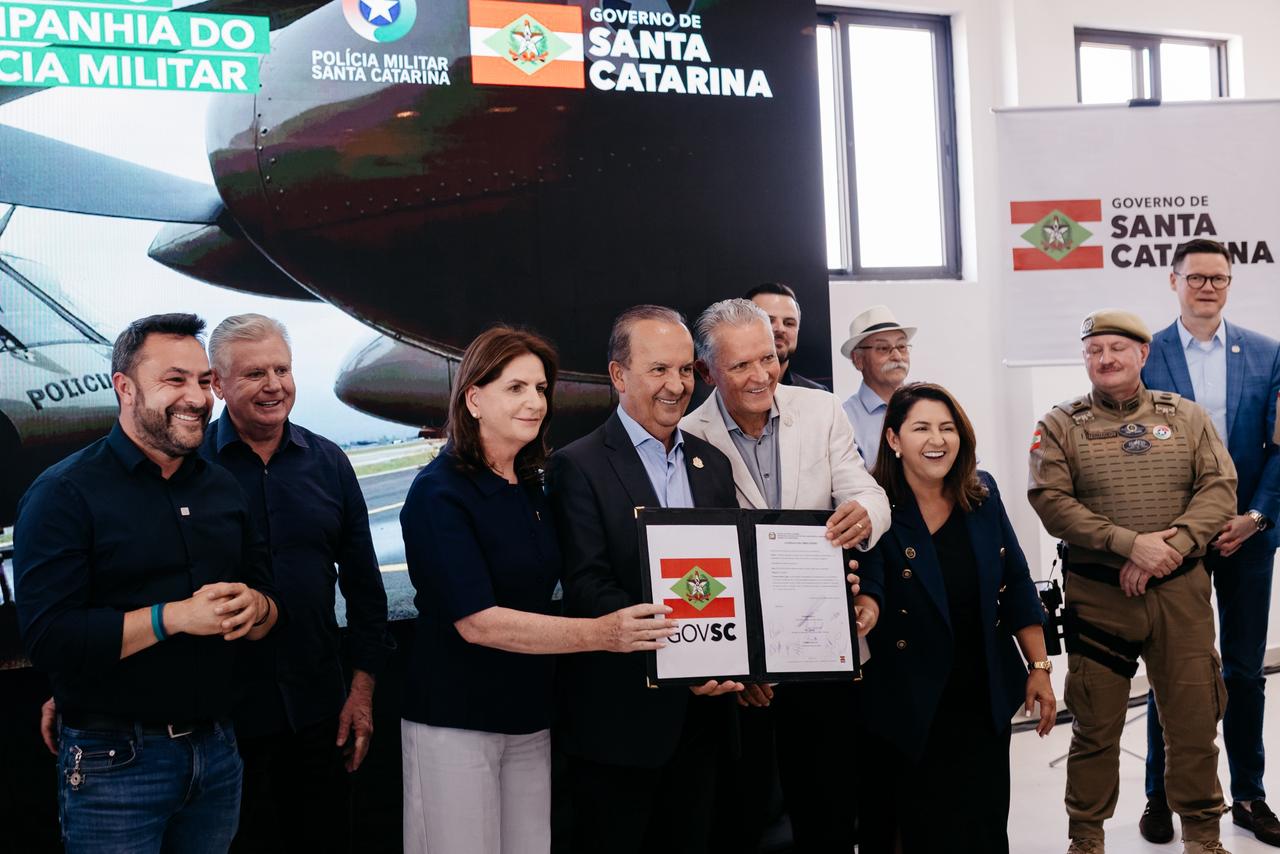 A prefeita Carmen Zanotto e o governador Jorginho Mello assinaram nesta quinta-feira (27 de novembro) a autorização para execução das obras do novo hangar da 5ª Companhia do Batalhão da Polícia Militar, a ser construído no Aeroporto Municipal de Lages.