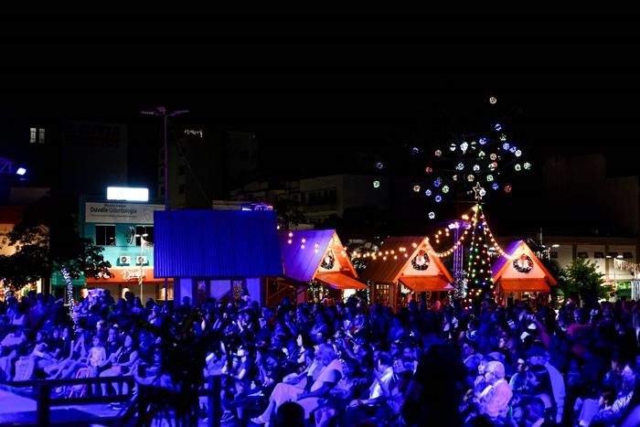 Ainda na noite desta sexta-feira, antes do espetáculo Janelas Encantadas, o público acompanhou a apresentação do Coral Frei Bernardino, que abriu a programação cultural do Palco Noel. Na sequência, o acendimento das luzes marcou mais uma vez o momento simbólico que ocorre todas as noites.