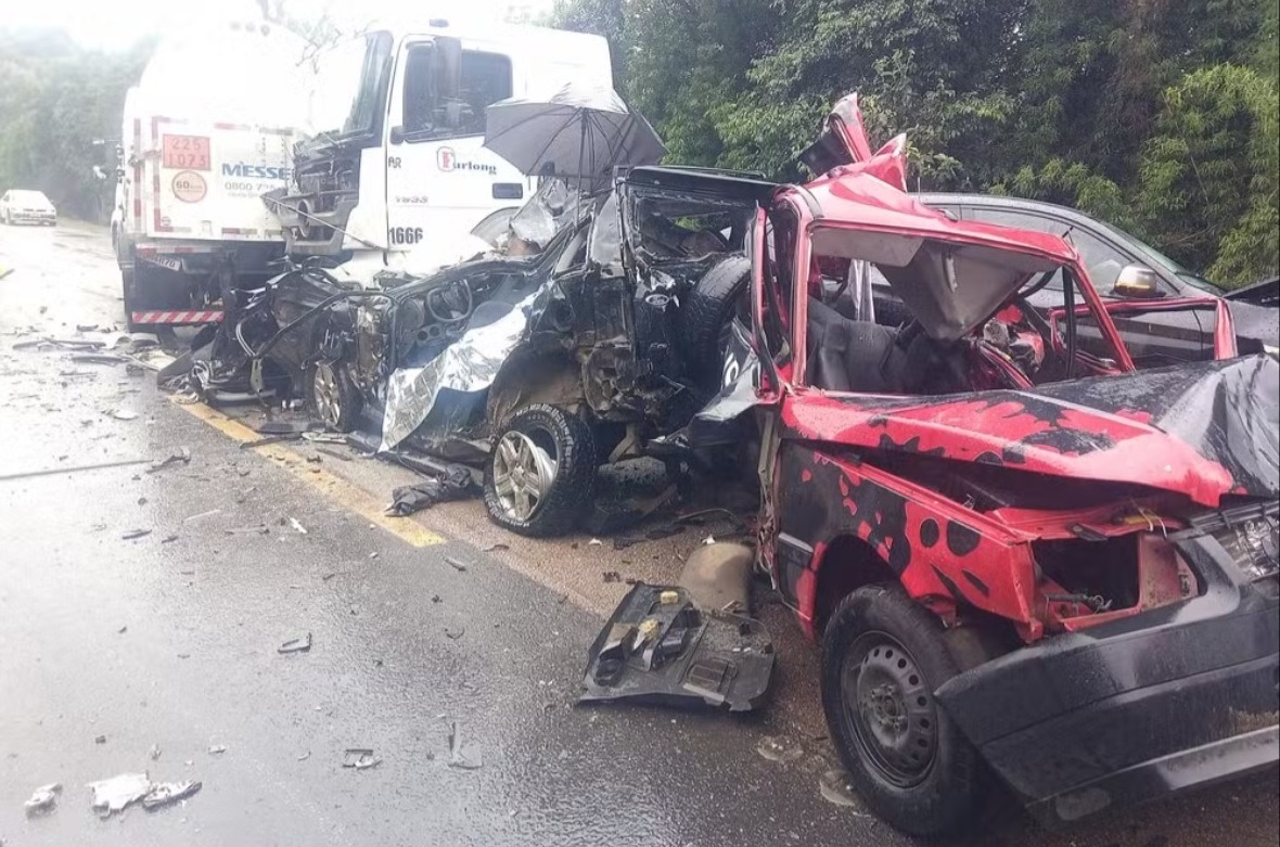 Segundo a concessionária Arteris Planalto Sul, que administra a rodovia, sete veículos se envolveram em um engavetamento, sendo três caminhões e quatro automóveis.