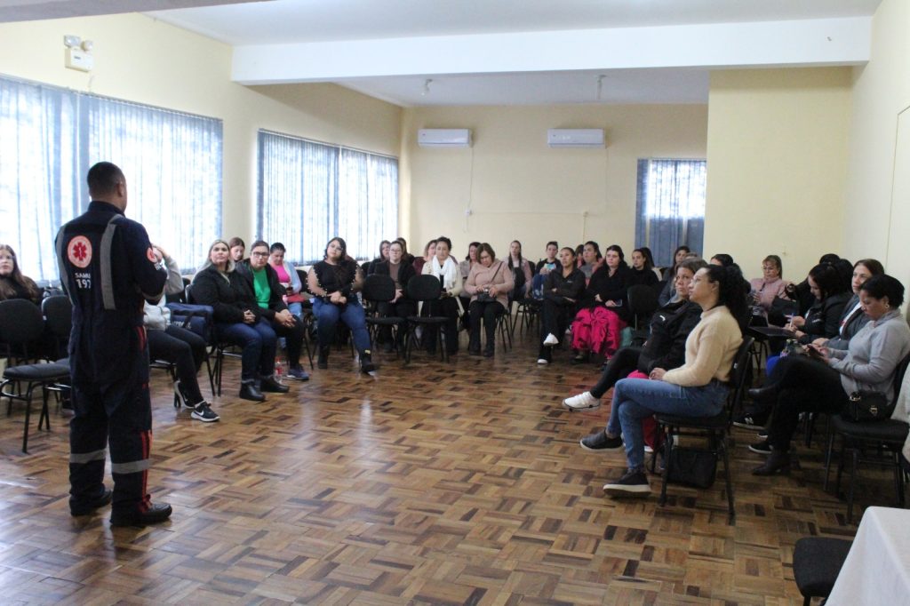 A formação foi proferida com parceria do Samu e Secretaria da Educação, pelas formadoras da Educação Infantil do município, Isabel Nercolini Ceron e Regina Scopel Maia.