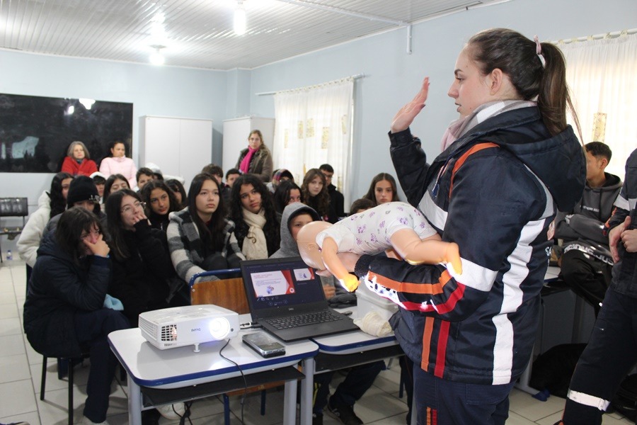 As palestras ministradas pelos profissionais do Samu, Gabriella Milbratz Nogueira Mendes e Fernando Gabriel Fritsch, visam capacitar crianças e adolescentes para enfrentar situações de emergência, fortalecendo a segurança e o cuidado com a vida.
