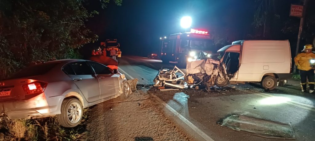 Um grave acidente de trânsito foi registrado na madrugada desta quinta-feira (4) na SC-350, em Aurora, no Alto Vale do Itajaí. A colisão frontal entre um Fiat Fiorino e um Honda City aconteceu por volta das 4h40, no km 373 da rodovia, resultando em uma morte e dois feridos.