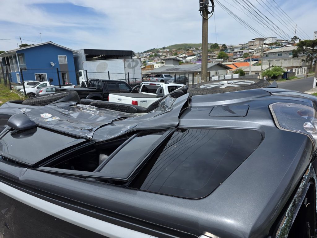A colisão envolveu uma Mitsubishi Pajero e uma Chevrolet S10. Com o impacto, a Pajero acabou tombando sobre a calçada.