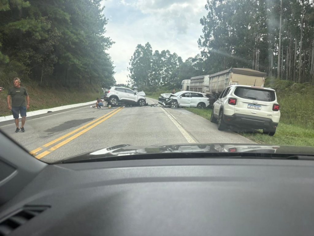 De acordo com informações da Polícia Rodoviária Federal, o acidente foi registrado por volta das 14h30, na altura do limite entre os dois municípios. Entre os veículos envolvidos estão um Chery Tiggo 7, com placas da Argentina, e um modelo da montadora chinesa BYD.