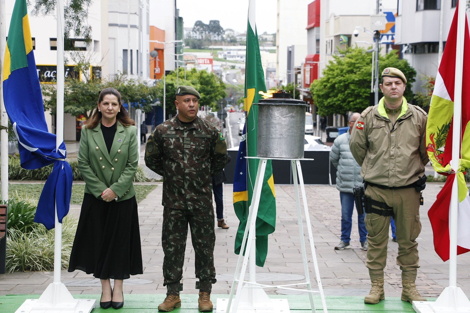 Foi realizada na manhã desta segunda-feira (1º de setembro), na Praça João Ribeiro, a tradicional solenidade que marca a abertura da Semana da Pátria em Lages. O ato contou com a presença da prefeita Carmen Zanotto, autoridades civis e militares, além da participação do 1º Batalhão Ferroviário (BFv), responsável pela condução do fogo simbólico da Pátria.