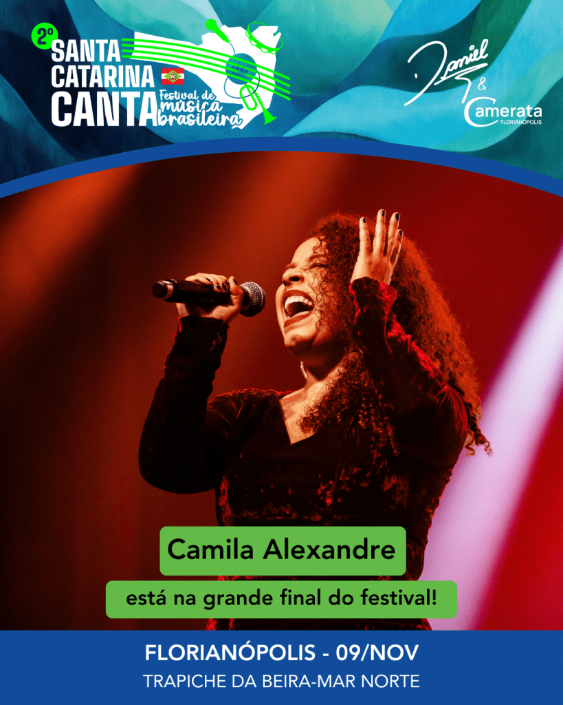 O Festival Santa Catarina Canta é uma iniciativa do Governo do Estado de Santa Catarina, por intermédio da Fundação Catarinense de Cultura (FCC), com produção da Camerata Florianópolis e apoio da Fundação Cultural de Lages (FCL). O projeto tem como objetivos valorizar os talentos locais e celebrar a riqueza da música brasileira em todas as regiões do Estado. “Lages é um celeiro de talentos, e é muito gratificante termos artistas como a Camila Alexandre, que já teve repercussão nacional, representando a Serra Catarinense num festival que exalta a produção de todas as regiões de Santa Catarina”, comenta a superintendente da Fundação Cultural de Lages, Carla Zonatto.