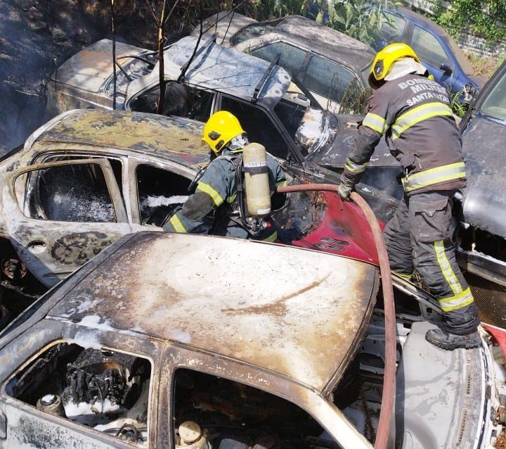 No local, as equipes constataram um foco ativo de incêndio em um depósito de carros velhos (ferro-velho). Aproximadamente sete carcaças de veículos estavam em chamas no momento da chegada da guarnição.