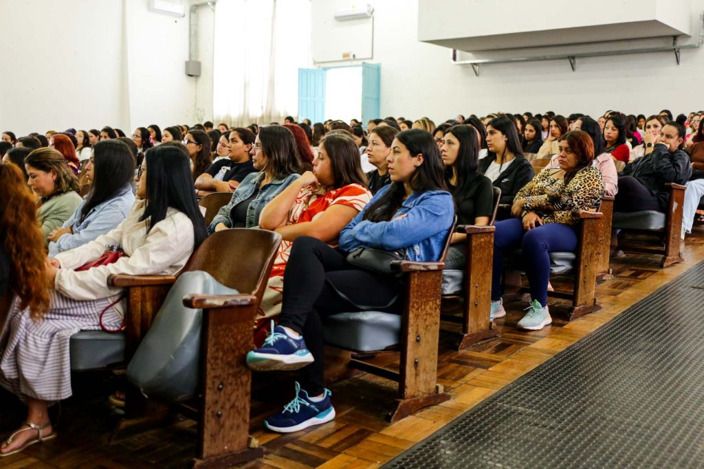 A Secretaria Municipal de Educação realizou, nesta sexta-feira (13 de março), o 1° Encontro de Formação Continuada e Permanente com as estagiárias que atuam nos Centros de Educação Infantil Municipais (Ceims) do letivo de 2026. O encontro de formação ocorreu no auditório da Escola de Educação Básica (EEB) Vidal Ramos Júnior e reuniu cerca de 500 profissionais em formação.