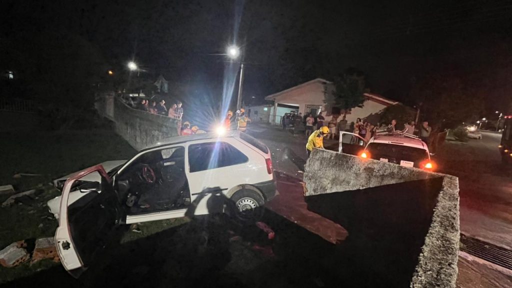 A colisão aconteceu no cruzamento das ruas Nereu Ramos e Silvio Neves Bleyer, no bairro Santo Antônio, e envolveu dois veículos de passeio, ambos de cor branca.